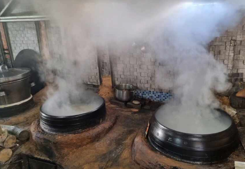 고두밥으로 식혜를 만들고, 이를 오랜 시간 끓여 조청과 갱엿을 거친 뒤 마지막으로 엿 늘리기 과정을 통해 공기층을 형성하면서 특유의 바사삭한 식감이 완성됩니다.
