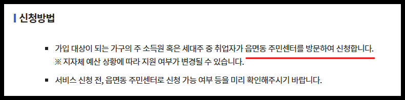 주소지 관할 읍·면·동 행정복지센터 방문 접수가 기본입니다.