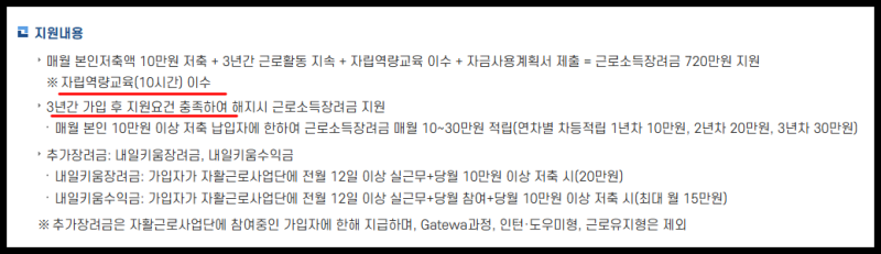 또한 자립역량교육 10시간을 이수해야 하며, 만기 전 자금사용계획서를 제출해야 합니다.