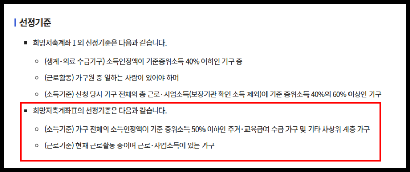 생계·의료급여 수급자는 일반적으로 희망저축계좌1 대상이므로, 신청 전 반드시 확인하셔야 합니다.