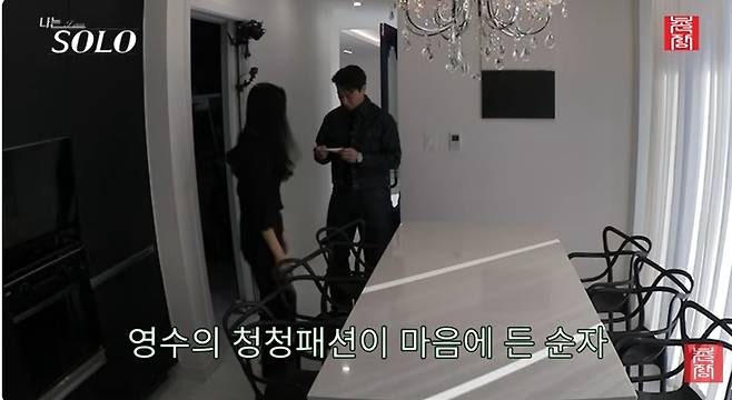 이후 영수는 청청 패션으로 갈아입고 다시 순자와 대화를 이어갔습니다.