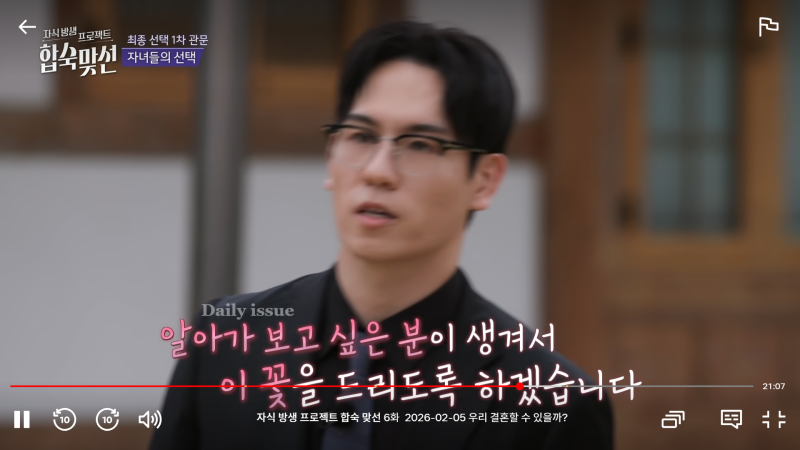 최종 선택의 날, 조은나래는 “이곳에서 만난 분들 중 가장 빛났던 분께 꽃을 드리고 싶다”고 말하며 서한결에게 다가갔습니다. 망설임 없는 발걸음과 또렷한 눈빛은 그의 진심을 그대로 보여주는 듯했습니다.
