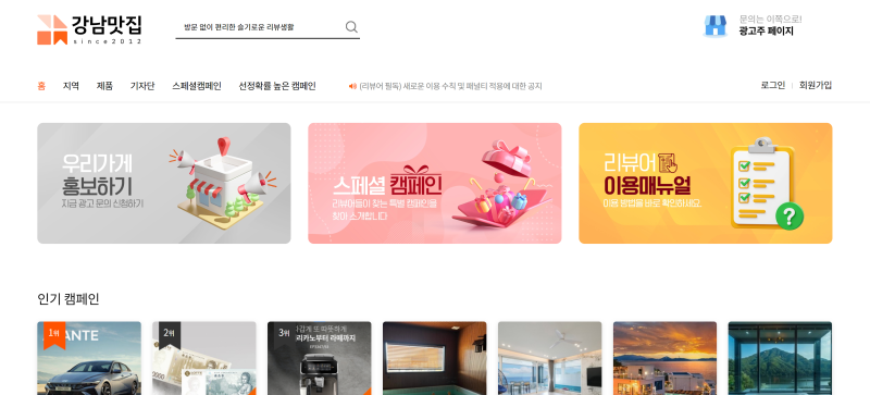 - 외식 체험단에 특화된 플랫폼으로 프리미엄 맛집이 많다.