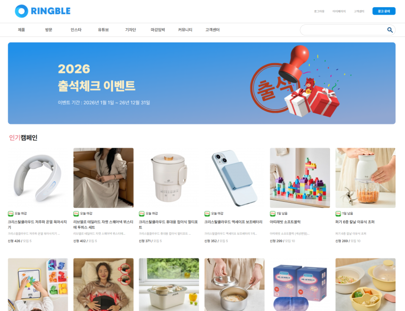 - 방문형보다는 배송형 체험단이 강점인 플랫폼이다.