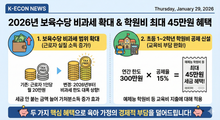 정부가 저출산 문제를 해결하기 위해 자녀 관련 세제 혜택을 대폭 강화했기 때문입니다. 특히 이번 개편의 핵심은 자녀 세액공제 금액 인상, 보육수당 비과세 범위 확장, 그리고 초등 저학년 학원비 공제 신설에 있습니다.