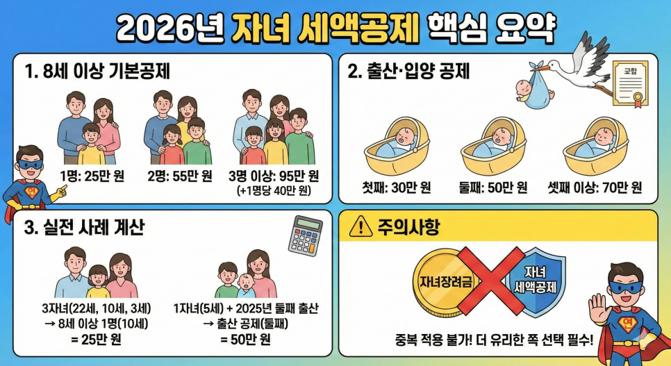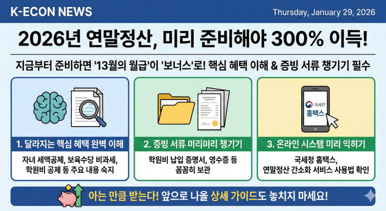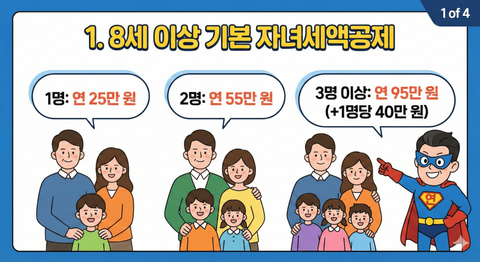 자녀 세액공제는 소득공제보다 세금 감면 효과가 직접적이므로, 아래의 변경 사항을 미리 숙지하여 '13월의 월급'을 제대로 챙겨보시기 바랍니다.