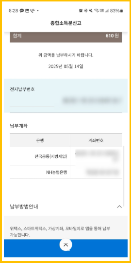 - 이걸 눌러야 위택스로 자동 연결되어 종소세의 10%인 지방세까지 환급/납부 처리가 완료됩니다. 정보를 다시 입력할 필요 없이 확인만 누르면 되니 잊지 마세요!