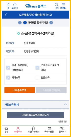 - 사업소득, 근로소득, 기타소득 등 본인에게 해당되는 건 모두 체크!